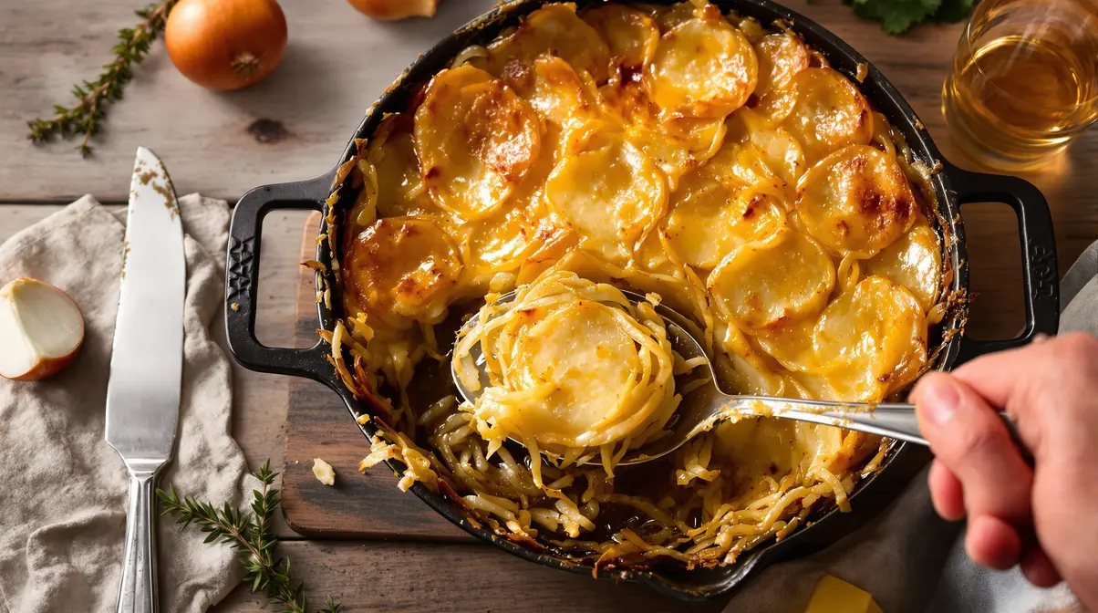 Imaginez une odeur de pommes de terre fondantes, d’oignons doucement dorés et de bouillon chaud qui sort du four. C’est simple, presque modeste, et pourtant le résultat est bluffant. Ce gratin pommes, oignons et bouillon a ce petit effet “waouh” qu’on n’attend pas d’un plat si facile.